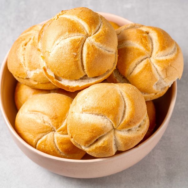 レーバーケーゼとピクルスを細かく刻んだクリーミーなサラダを、ふんわり香ばしいカイザーパンにたっぷりサンド。さっぱりした酸味とまろやかな味わいがクセになる、ドイツで定番の軽食スタイル。